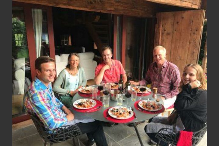 ""John works as a recruitment consultant from home and in London; Phoebe worked as an actress before the birth of the children and is an English language and literature graduate with a TEFL qualification and 20 years experience. She teaches adult literacy throughout the year and devotes the summer to hosting students. She and John run the small estate where they live looking after the animals and gardens. Her sister who is a musician also lives in part of the house and has her studio upstairs. Tom (26) is now in the Coldstream Guards. Hugh(24) is studying veterinary science and works on and off from home during the holidays . Ophelia(20) will be home from university helping to host the students.